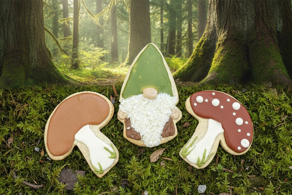 Beautifully decorated delicious sugar cookies for the season. Garden gnomes and mushrooms bring in the essense of spring gardens. All of our cookies are free of GMO's and are meticulously decorated with organic plant based dyes. Gluten, Dairy, Soy and GMO Free - always.